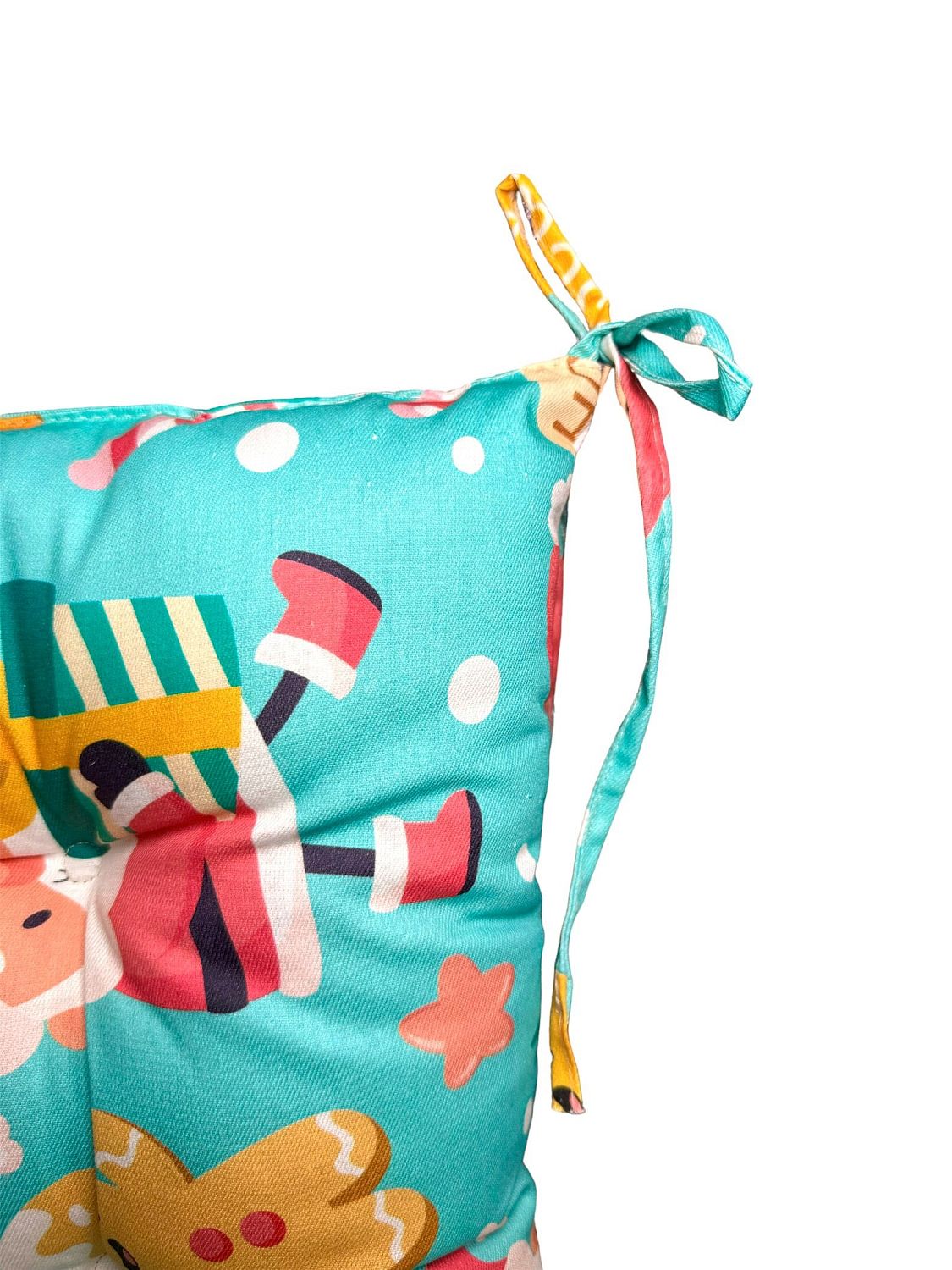 Подушка для сидения не боится стиральной машины и неравномерного сбивания наполнителя. Очень легко крепится с помощью завязок
